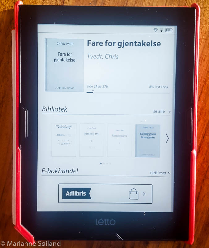 Eg leser som du veit ikkje norske e-bøker på min kindle, for eg har ikkje hatt lyst eller tid til å sette meg inn i korleis det virker. Eg kjøper bøkene via amazon enten på kindle (sjelden) eller på PC og låner norske bøker på biblioteket. Letto skal eg definitivt legge meg på minnet om ønsket for norske e-bøker skulle dukke opp.
